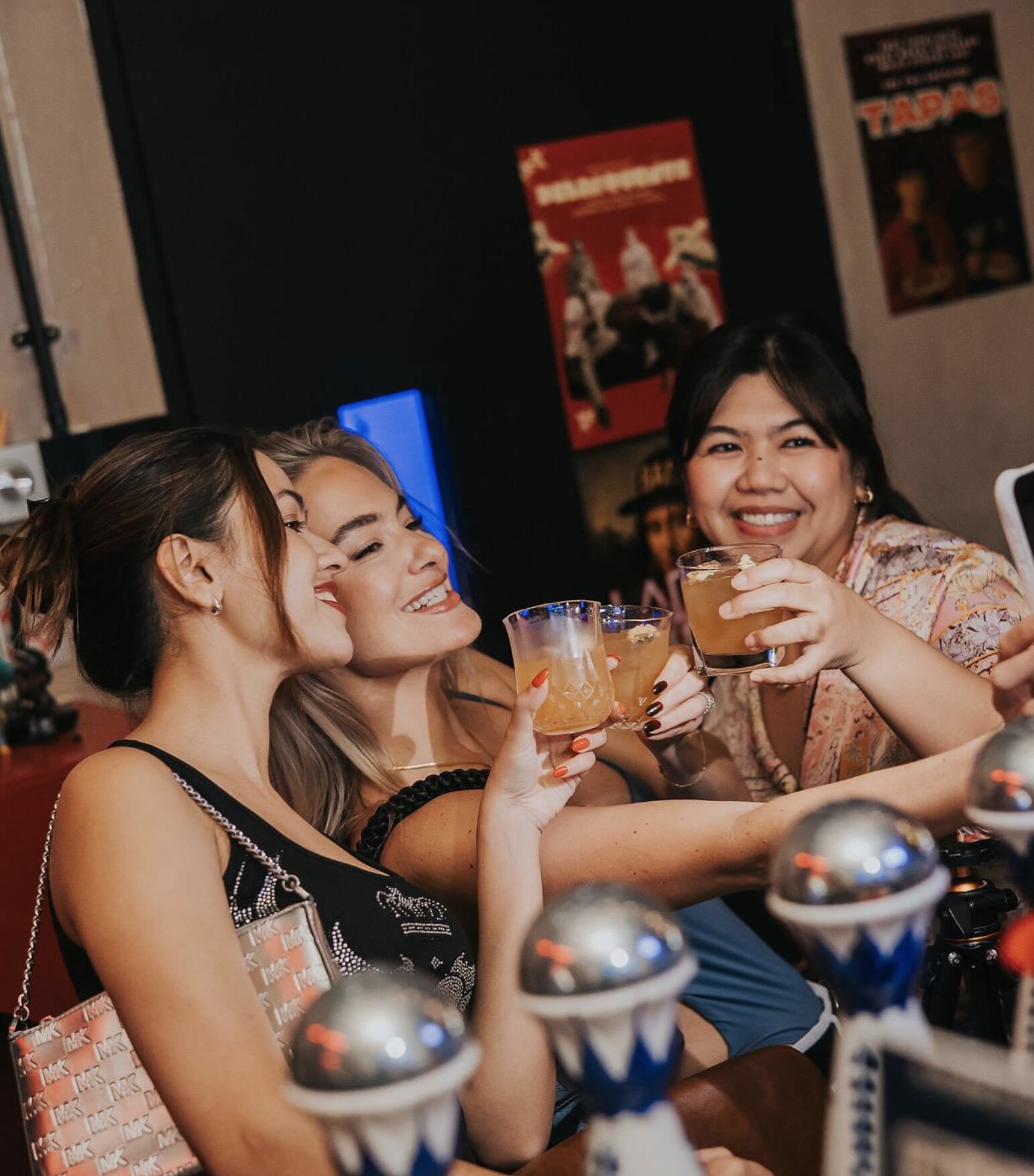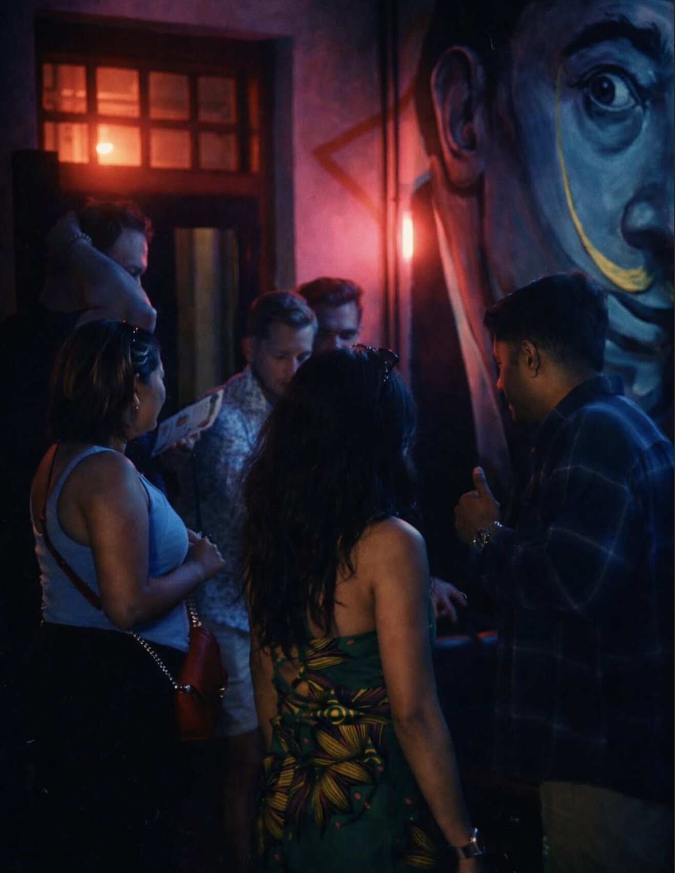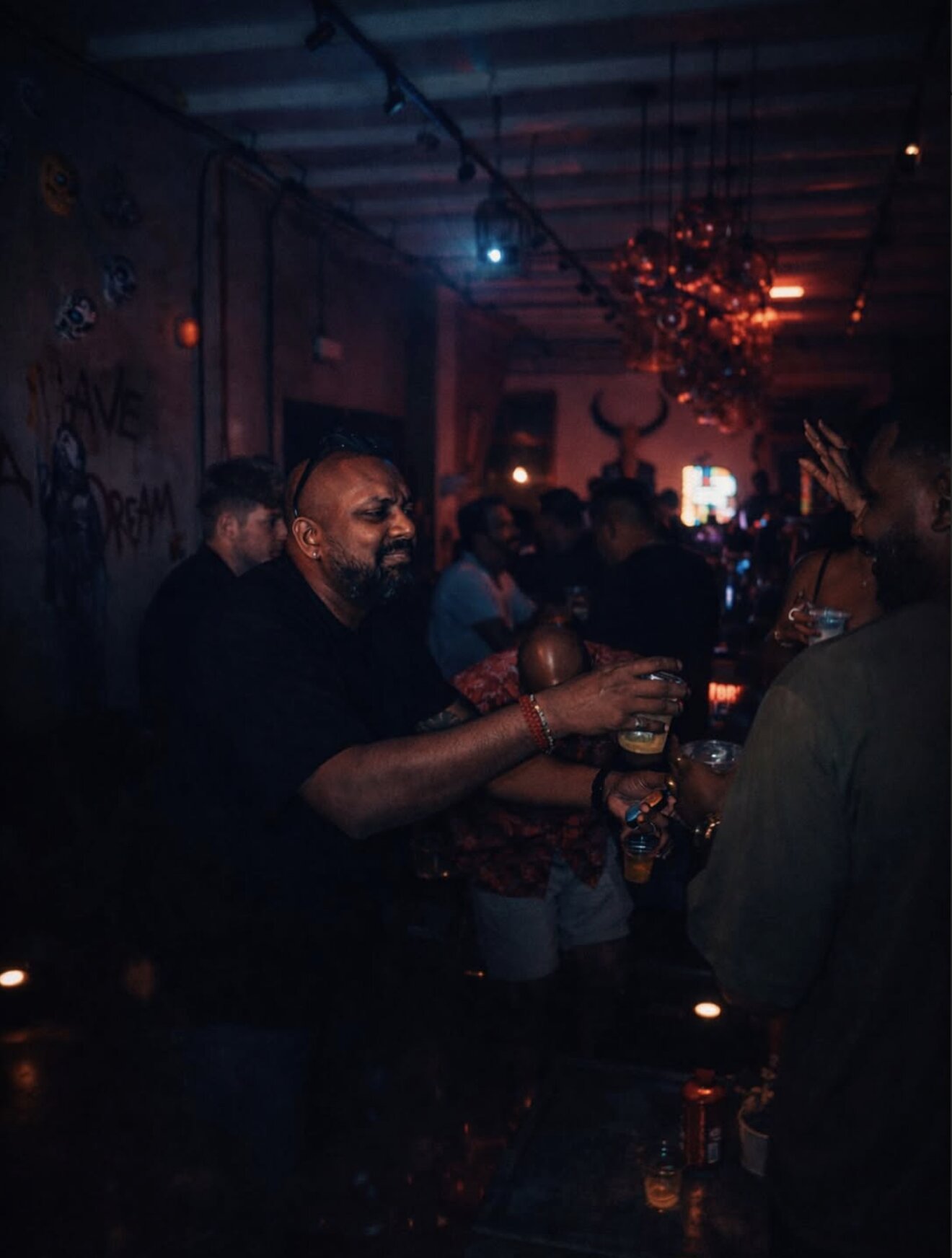 One question. Two strangers. Both answer — both drink free. The question changes every hour, announced from the stage. Find someone you have never met. Answer honestly. Collect your round.